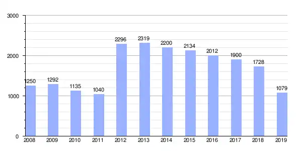 | Gráfica de evolución demográfica de Cañete la Real[5] entre 1842 y 2021 |
