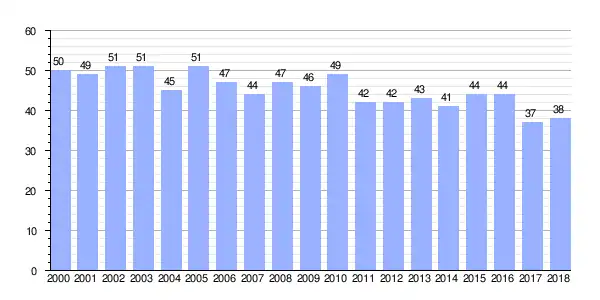 | Gráfica de evolución demográfica de Cabanas entre 2000 y 2018 |
