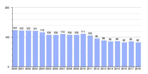 | Gráfica de evolución demográfica de Cabanas (parroquia) entre 2000 y 2018 |