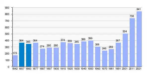 | Gráfica de evolución demográfica de Cabanillas de la Sierra[1] entre 1842 y 2021 |