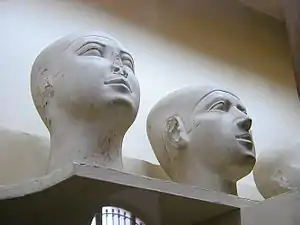 Se conocen treinta y siete cabezas de reserva, que incluyen cinco en colecciones privadas.[21] En Abusir, Borchardt encontró una cabeza de reserva para una princesa, y en su tumba se encontró una oreja que posiblemente perteneció a una de Kaaper.[22] La gran mayoría de las cabezas de reserva provienen de la zona de Guiza, y datan de mediados de la IV Dinastía hasta principios de la V Dinastía.[23][24]