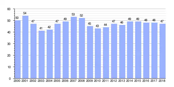 Gráfica de evolución demográfica de Cabo entre 2000 y 2018