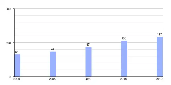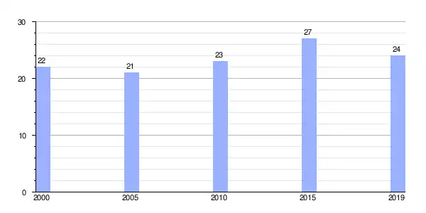 | Gráfica de evolución demográfica de Cabreiros (parroquia) entre 2000 y 2019 |