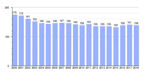 | Gráfica de evolución demográfica de Cachada entre 2000 y 2018 |
