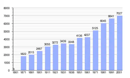 | Gráfica de evolución demográfica de Caerano di San Marco entre 1861 y 2001 |