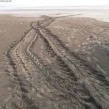 La incubación dura alrededor de 80 días, después de la cual las crías excavan a través de la arena hacia la superficie. Por lo general esto ocurre durante la noche, ya que la oscuridad aumenta las oportunidades de escapar la depredación y permite evitar las temperaturas extremas de la superficie de la arena durante el día.[51] Las crías se dirigen hacia el océano, navegando hacia el horizonte más brillante creado por el reflejo de las estrellas y la luna sobre la superficie del agua.[53]