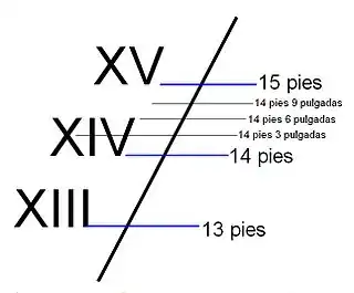 ![]() Escala de proa, sistema inglés en numeración romana. | ||