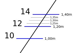 La lectura de las escalas de calados se realiza de acuerdo con lo siguiente: el pie del número indica el calado, y la altura del número es un decímetro o medio pie (6 pulgadas), según el caso; por tanto, las posiciones se obtienen proporcionalmente. Para relacionar ambas escalas, se indican las equivalencias entre pies, pulgadas y centímetros.[cita requerida]