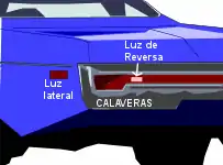 También podían encontrarse las luces de reversa separadas de la calavera en otro sitio de la carrocería trasera, por ejemplo en el antiguo Dodge Charger.