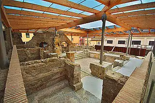 Se conservan restos del antiguo término romano de Aquae Calidae, compuestos por una piscina termal que está rodeada de habitáculos destinados a la realización de los tratamientos a base de aceites. Los hallazgos encontrados durante las excavaciones de la zona se exponen en el Museo de Arqueología de Cataluña, situado en Gerona. Entre las piezas que se exponen se encuentra una cabeza de perro realizada en bronce así como monedas correspondientes a diversos periodos.