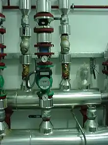 - Válvula reductora de presión.- Válvula que permite reducir la presión de la red general para ajustarla a la del circuito de calefacción.[17]