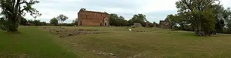 Se nos ocurre que el motivo que pudieron tener los jesuitas para construir un altar soldado a los muros sería el siguiente: un altar de madera es fácil de destruir o quemar y, en aquellos tiempos, la seguridad en nuestra campaña era menos relativa. En cambio, el retablo que hemos descripto, de estructura incombustible ofrecía serias dificultades para su destrucción; en caso de peligro, los moradores de la “reducción”, antes de abandonarla, podían retirar los ornamentos y las imágenes de las hornacinas y ocultarlas en algún escondrijo; una vez pasado el peligro se volvía a colocar todo en su sitio y las cosas seguían como antes.[5]
