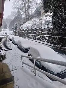 La parte superior de la calle, nevada