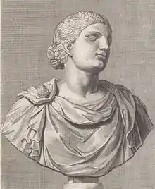 ![]() Reproducción de un dibujo del siglo XVII en el que se imagina un busto de Calpurnia. Obra de Hubertus Quellinus | ||