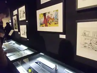 ![]() Exposición de tiras cómicas de "Calvin & Hobbes" de 2015. | ||