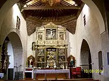 Iglesia de Santiago Ápostol: Única iglesia en pie de la localidad, de origen románico en su base, con acabado mudéjar. Es de planta de tres naves, fechada en 1758 la obra final —pues ya existía con anterioridad, como se ha explicado— , de la que quedarían un arco de medio punto y otro apuntado a ambos lados del altar mayor y ciertos restos de pinturas en el bajocoro, todo ello de un magnífico estilo tardorrománico, con representaciones evangélicas y relativas al viacrucis. Aunque con mezcla de estilos destaca el mudéjar de su torre y del excelente artesonado de su bóveda central, siendo este municipio el origen de la llamada "ruta del artesonado" —comienza en la localidad y finaliza en la leonesa de Sahagún—. Próculo Ibáñez afirma que el templo fue en primer lugar una sinagoga, que se pondría en evidencia por estilo del artesonado que dibuja y entrelaza varias veces un Mogen David. La comunidad judía fue muy pujante en toda la zona (recuérdese que la localidad de Frómista recibe popularmente su población el apodo de "judíos").El retablo, renacentista contiene en la calle central una imagen de Santiago Ápostol a caballo, malinterpretada como del siglo XVI —siendo obvia su readecuación al altar que hoy ocupa, en este caso del siglo XVI—. Es una de las muchas representaciones del "Santiago matamoros" de la probablemente legendaria batalla de Clavijo, si bien única en el mundo por su particular configuración (vestido al estilo moro). Tal vez la pieza más valiosa del conjunto es el Retablo de los Santos mártires, obra del siglo XVI que actualmente se halla en el museo diocesano provincial, retirado a mediados de los años sesenta por el Obispado sin aprobación del municipio, que fue informado de su retirada para "restauración y exposición" (existe desde hace más de dos décadas un interés creciente por el retorno de dicha obra a su emplazamiento originario —recuérdese que las obras se costeaban con cargo al erario municipal y aportaciones privadas, rara vez se costeaban desde instancias superiores; menos aún en este caso—). Es interesante también la gran cantidad de tallas religiosas que desfilan o no en la Semana Santa algunas de ellas de gran valor y calidad artística. Las más destacadas por la devoción popular que despiertan en la localidad son la Piedad, "la Purísima" (talla de vestir con pelo natural), San Isidro Labrador (copatrón de la localidad) y otra talla de Santiago Apóstol matamoros que desfila el 25 de julio, réplica —sino obra gemela— del presente en la Catedral de Santiago de Compostela.