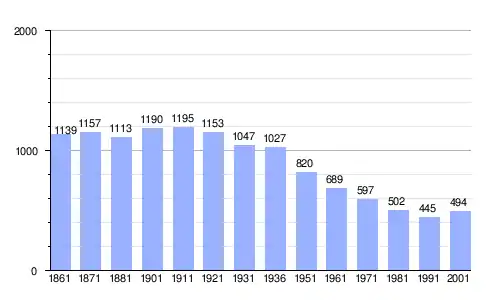 | Gráfica de evolución demográfica de Camerano Casasco entre 1861 y 2001 |