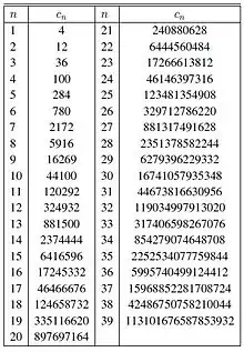 Sea el número de SAWs de longitud sobre la rejilla . Para valores pequeños de se puede conocer , por ejemplo