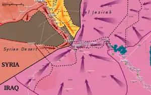 La campaña fue desarrollada en paralelo a la campaña del este de Siria realizada al otro lado de la frontera por el gobierno de Bashar al-Asad y la batalla de Al Raqqa realizada por las Fuerzas Democráticas Sirias al noreste de Siria.