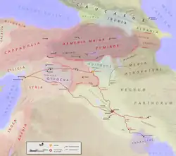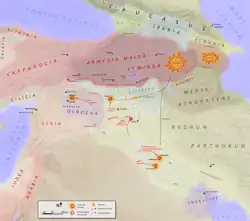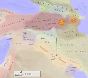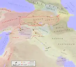 El Reino de Armenia, que junto con el este de Siria y el noroeste de Mesopotamia iba a ser uno de los principales problemas respecto a los conflictos con Partia, se convirtió en una gran potencia en Oriente durante la primera mitad del siglo I a. C. La alianza de Tigranes II el Grande, colocado en el trono de Armenia por los partos, y Mitrídates VI del Ponto desencadenó la primera de una serie de tres guerras contra Roma. Fue durante la tercera guerra cuando los romanos se vieron obligados a cruzar el Éufrates por primera vez (entre el 74 y el 63 a. C.).