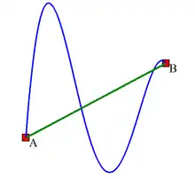 En un espacio bidimensional y tridimensional, existe una ambigüedad al tomar una integral entre dos puntos, ya que hay infinitos caminos entre los dos puntos: además de la línea recta formada entre los dos puntos, se podría elegir un camino curvo de mayor longitud, como se muestra en la figura. Por lo tanto, en general, el valor de la integral depende del camino tomado. Sin embargo, en el caso especial de un campo vectorial conservativo, el valor de la integral es independiente del camino tomado, lo que puede pensarse como una cancelación a gran escala de todos los elementos que no tienen una componente a lo largo de la recta entre los dos puntos. Para visualizarlo, imaginemos a dos personas escalando un acantilado; una decide escalar el acantilado subiendo verticalmente por él, y la segunda decide caminar por un sendero sinuoso que es más largo en longitud que la altura del acantilado, pero con sólo un pequeño ángulo respecto a la horizontal. Aunque los dos excursionistas hayan tomado rutas diferentes para llegar a la cima del acantilado, en la cima ambos habrán ganado la misma cantidad de energía potencial gravitatoria. Esto se debe a que un campo gravitatorio es conservativo.