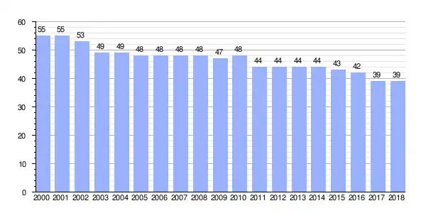 | Gráfica de evolución demográfica de Campos entre 2000 y 2018 |