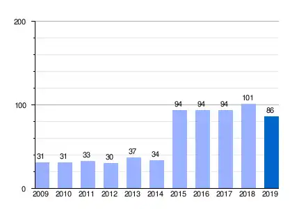| Gráfica de evolución demográfica de Campotéjar Baja entre 2009 y 2019 |