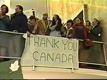«Gracias Canadá»: mensaje de agradecimiento durante la llegada a Estados Unidos de los diplomáticos estadounidenses evacuados.