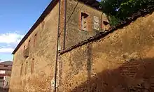 Enfrente de la iglesia se encuentra un edificio rectangular de dos plantas construido en canto rodado. En la parte central de la fachada se encuentra la puerta principal y encima de ella un escudo de piedra esculpido, en el que se puede leer "en el año 1754", y una figura que semeja a una palmatoria con un mango alargado. Este edificio ha tenido varios usos a lo largo de su historia, siendo de los más destacados el uso que se le dio como prisión de la zona en épocas pasadas, sin que se sepa el margen de años exacto de este uso. En la planta baja existe un túnel o pasadizo bajo tierra que comunica con el edificio que fue convento de los Padres Benedictinos de Sahagún, y que a continuación se presenta. En la época presente, ha pasado por varias manos privadas que lo han usado como vivienda, y tanto su interior como su exterior están totalmente reformados.