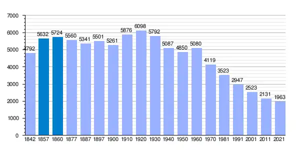 | Gráfica de evolución demográfica de Candamo[2] entre 1842 y 2021 |