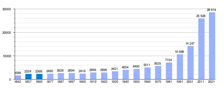 | Gráfica de evolución demográfica de Candelaria[24] entre 1842 y 2021 |
