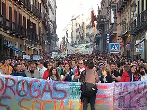 El consumo de cannabis en España tuvo su aparición en la etapa post-franquista (años 70-80), cuando llega la democracia y el país se abre al mundo. Llegan las nuevas ideas hippies y contraculturales que estaban candentes en otros países occidentales (como el movimiento Mayo del 68 en Francia o el movimiento pacifista juvenil de EE. UU. y Reino Unido). El cannabis era traído principalmente desde Marruecos en forma de hachís, y en un principio solo se extendió entre las clases marginales (mercheros, la España «cañí»). No fue hasta mediados de los años 80, cuando eclosionó un movimiento contracultural en Madrid (la Movida) que el consumo de hachís se hizo visible en las clases populares.