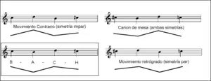 - Por movimiento contrario, en contraposición a voz canónica y su consecuente.