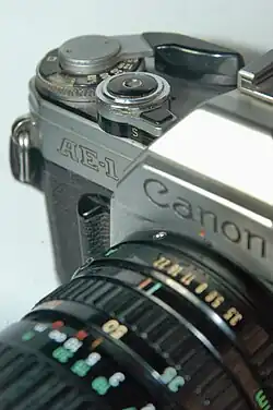 La Canon AE-1 es una cámara réflex para aficionados avanzados que emplea película de 35 mm. La fabricó Canon en Japón desde abril de 1976 hasta 1984. Posee control electrónico de disparador, un obturador de plano focal electromecánico con un rango de tiempos de exposición de 2 s a 1/1000 s, además de exposición continuada ("pose" o Bulb) y sincronización con flash electrónico con una velocidad de sincronización máxima de 1/60 s. La cámara mide 87 mm de altura, 141 mm de ancho y 48 mm de profundidad y pesa 590 g. La mayoría se fabricó en color negro y metálico y algunas completamente negras. El lente provisto de serie era de 50 mm 1:1.8