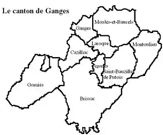 En aplicación del Decreto nº 2014-258[2] de 26 de febrero de 2014, el cantón de Ganges fue suprimido el 22 de marzo de 2015 y sus 9 comunas pasaron a formar parte del nuevo cantón de Lodève.