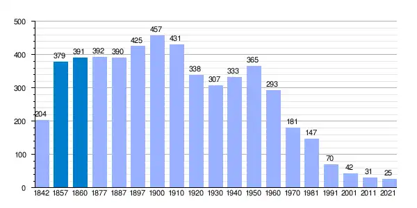 | Gráfica de evolución demográfica de Cantabrana[2] entre 1842 y 2021 |