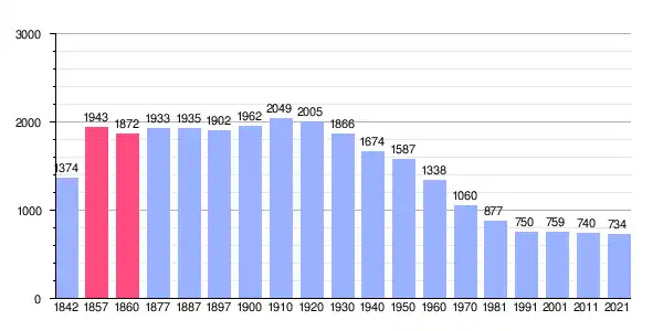 | Gráfica de evolución demográfica de Cantavieja[14][15] entre 1842 y 2021 |