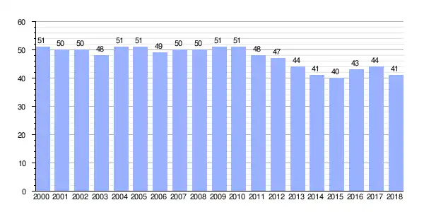 | Gráfica de evolución demográfica de Cantelar entre 2000 y 2018 |