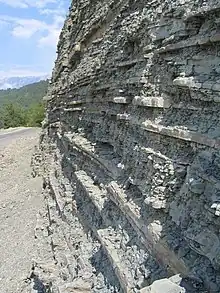 - Esta obra contiene una traducción derivada de «Bed (geology)» de Wikipedia en inglés, publicada por sus editores bajo la Licencia de documentación libre de GNU y la Licencia Creative Commons Atribución-CompartirIgual 4.0 Internacional.