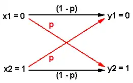 Note que si un canal tuviese probabilidad de error de bit eso no significa que sea un canal malo, todo lo contrario. Bastaría con invertir los bits antes de enviarlos para tener un canal ideal (con probabilidad ).