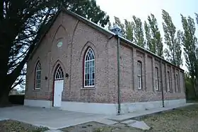Su planta es de forma rectangular y está compuesta por un solo salón principal, tiene una superficie de 12m x 19m y una altura de 5.50m. Fue construida por Jack Jones y los trabajos de carpintería fueron realizados por Llewelyn Griffiths y Egryn Evans. Tiene un aspecto "neogótico" y forma ojival que se repite en la fachada de su frente, con molduras de ladrillos.[3]