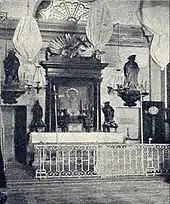 A finales del siglo XIX, y antes de su demolición, a ambos lados del altar se había colocado en sendas peanas dos estatuas del Sagrado Corazón de Jesús y del Inmaculado Corazón de María.