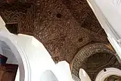 Hasta la reforma acometida por Carlos II, la capilla conservó gran parte de la estructura heredada de la época de los Trastámara. En su parte exterior se cubría por una cubierta a dos aguas, y en la parte norte de la crujía se disponía una espadaña que incluía un reloj y campanas en su parte superior.[11] incluyendo la cúpula de madera estilo mozárabe del presbiterio, con armadura de par y nudillo, dorada y con tracerías y racimos propios de este estilo; así como el techo de la nave, de estilo mozárabe también soportado por una armadura de par y nudillo. Castaño Perea señala la similitud de este efecto de las techumbres con los de la iglesia de San Nicolás de Bari de Madrigal de las Altas Torres.