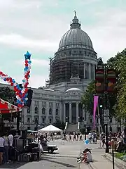El Capitolio del Estado de Wisconsin (en inglés Wisconsin State Capitol) es un edificio situado en Madison, la capital del estado de Wisconsin (Estados Unidos). Alberga las dos cámaras de la Legislatura del estado junto con la Corte Suprema y la Oficina del Gobernador. Terminado en 1917, es el quinto en servir como el capitolio de Wisconsin desde la primera legislatura territorial convocada en 1836 y el tercer edificio desde que accedió la condición de estado en 1848.[1] El Capitolio es el edificio más alto de Madison, una distinción que ha sido preservada por la legislación que prohíbe los edificios más altos que las columnas que rodean la cúpula (187 pies). Está ubicado en el extremo suroeste del Istmo de Madison. Las calles que rodean el edificio forman la Plaza del Capitolio. Fue incluido en el Registro Nacional de Lugares Históricos en 1970 y nombrado Hito Histórico Nacional en 2001.[2]