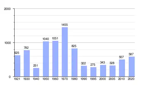 | Gráfica de evolución demográfica de Capula entre 1921 y 2020 |