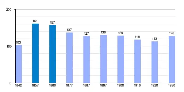 | Gráfica de evolución demográfica de Carbonera[1] entre 1842 y 1930 |