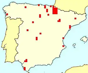 El carlismo no era una agrupación genuinamente nacional; su llamado Mass Party Index, un parámetro ideado para medir la capacidad de competir en todos los distritos electorales, osciló entre un escaso 20% (1931), un 48% (1933) y un 43% (1936).[69] Medido en términos del número de actas electorales obtenidas, el apoyo geográfico al carlismo durante el período republicano siguió siendo desigual; unas dos terceras partes de los escaños se obtuvieron en la mitad norte del país. Sin embargo, el resultado fue mucho más equilibrado que en el período de la Restauración, cuando no se ganó ningún escaño al sur de Sierra de Guadarrama; en la década de 1930 el partido registró un modesto resurgimiento en Castilla la Nueva.[70] Durante el régimen democrático liberal de 1876-1923, las tres fortalezas carlistas, Cataluña, Navarra y Vascongadas, proporcionaron el 81% de todos los escaños ganados; en 1931-1936 las tres regiones eran responsables de sólo el 46% de los escaños carlistas. Navarra siguió siendo claramente el núcleo carlista y aseguró el 26% de todos los escaños obtenidos; sin embargo, el partido redujo su dependencia de la provincia por debajo del 35% logrado durante la era de la Restauración. El centro de gravedad carlista se alejó particularmente de Vascongadas y Cataluña; el primero aseguraba sólo el 13% de los escaños frente al 30% durante la monarquía alfonsina; para Cataluña la cifra fue del 8% frente al 16%.