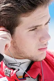 Sus competidores más cercanos son el piloto español Roberto Merhi y su compatriota Carlos Huertas.