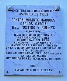 - Municipalidad de Bulnes (abril de 2008). «Carlos García del Postigo». Archivado desde el original el 22 de febrero de 2014. Consultado el 14 de febrero de 2014.