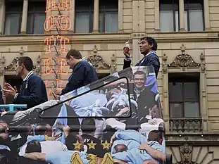 Luego de ser bicampeón de la Premier League con los red devils, Tévez protagonizó uno de los traspasos más polémicos de la época al ser transferido a los eternos rivales de su equipo,[10] el Manchester City, por 47 millones de libras esterlinas en julio del 2009. Como citizen, Tévez fue Bota de Oro de la Premier League en la temporada 2010-11, y en la temporada 2011-12 fue parte del equipo que volvió a ganar la liga para los sky blues tras 44 años.[11]